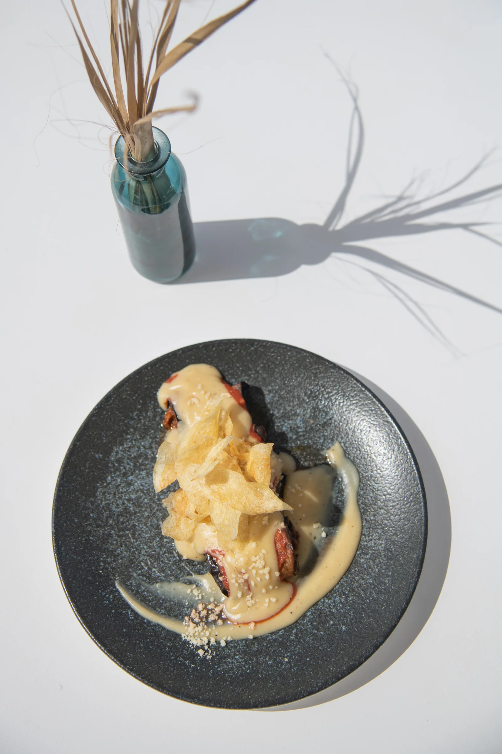 Smoked aubergine with Feta cheese on a